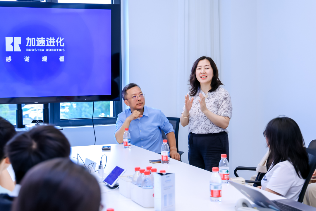 随后,小天使们在会议室展开深入交流。加速进化联合创始人宋安琪介绍了当下人形机器人发展的趋势,加速进化的定位、使命、产品及商业化路径等。英诺天使基金管理合伙人周全分享了此次走访加速进化的原因,并对加速进化两年来的快速发展给予了肯定。